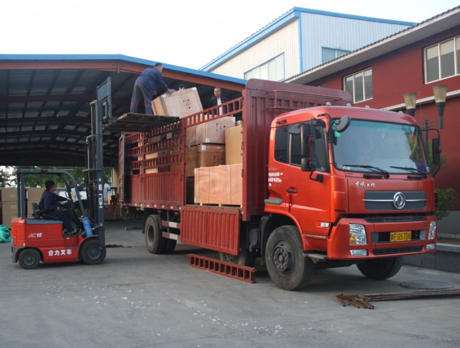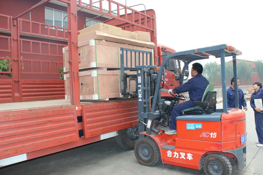 他們有條不紊、一絲不茍,把展品一件件的搬運上車。為了確保產品在運輸途中的安全,他們更是仔細揣摩、合理安排擺放位置。好高!兄弟們一定要注意安全啊!